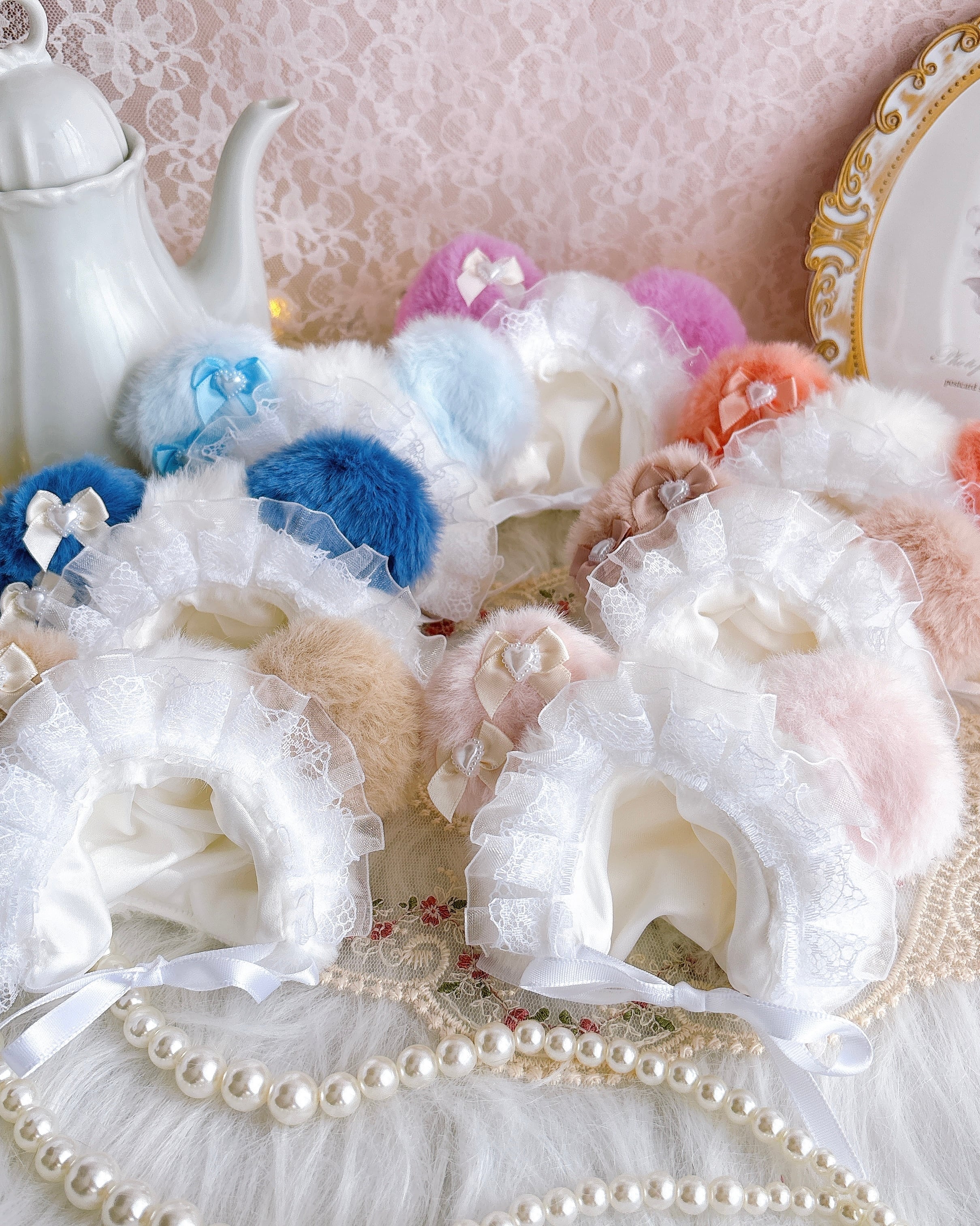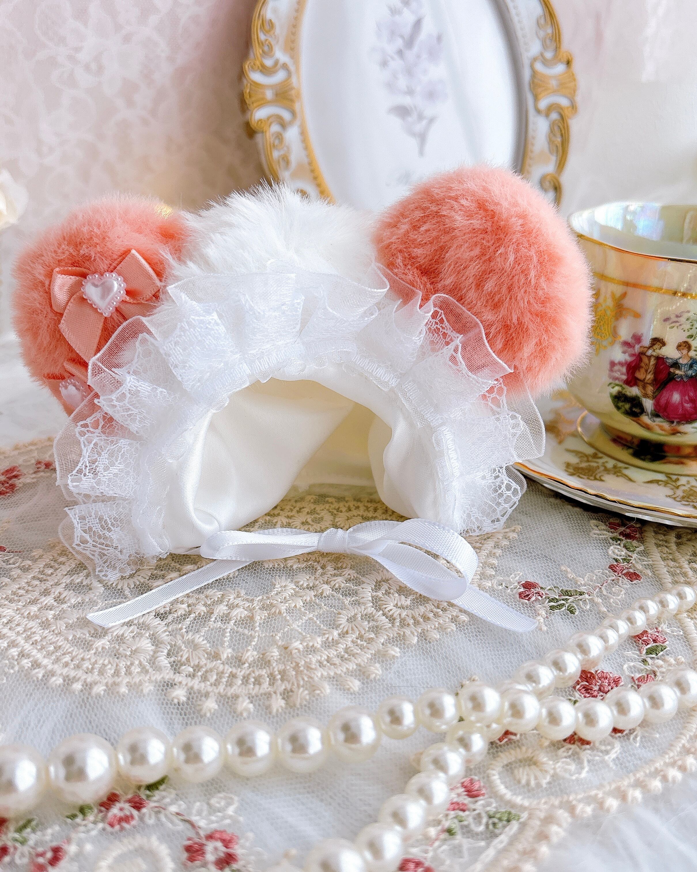 顎紐をきゅっと結ぶタイプで、後ろ姿まで可愛く仕上がります。